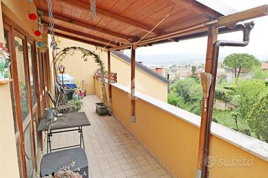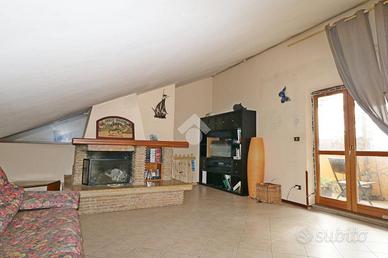In uno stabile costruito ad inizio degli anni 90 con facciate recentemente ristrutturate, proponiamo in vendita un immobile di 115 mq da rimodernare internamente, disposto su due livelli con box auto di proprietà di 15 mq dotato di elettricità ed acqua. Al primo livello, si trova un soggiorno che si apre su una cucina abitabile, camera singola, camera matrimoniale e bagno completo finestrato. Tramite una comoda scala interna, si accede al secondo livello dove troviamo un ultriore vano di circa 50 mq con caminetto a legna, bagno cieco con vasca, ripostiglio ed una terrazza di ampia metratura con vista aperta sul verde e sulla città. Situato in una zona residenziale tranquilla, l'immobile gode di una buona esposizione e di una posizione strategica, con servizi e trasporti facilmente raggiungibili. Una soluzione abitativa che coniuga comfort e praticità, adatta a chi desidera vivere in un contesto sereno senza rinunciare alle comodità della vita moderna. Posto auto e giardino condominiale.