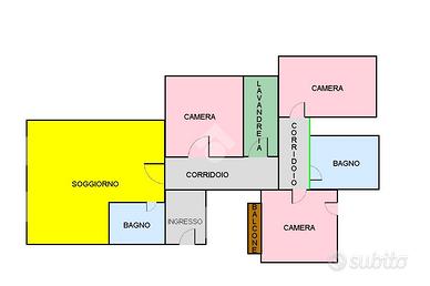 Con una superficie di 120 mq, l'appartamento si trova a un piano intermedio e offre un'ampia zona giorno composta da quattro locali.