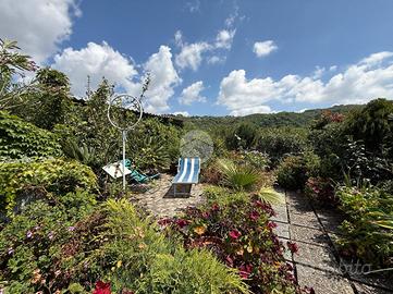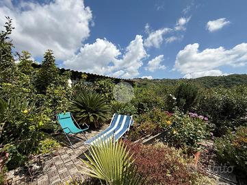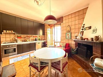 Cucina abitabile con camino e accesso diretto al terrazzo,