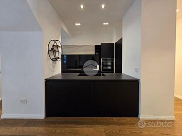 Dall'ingresso si raggiunge subito l'ampia zona giorno, dove trova alloggio una cucina moderna con penisola, la zona pranzo ed il soggiorno con accesso al balcone terrazzato.