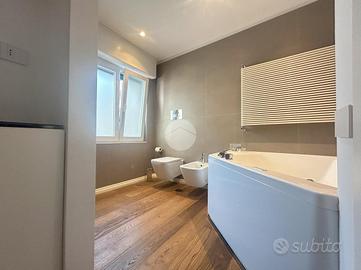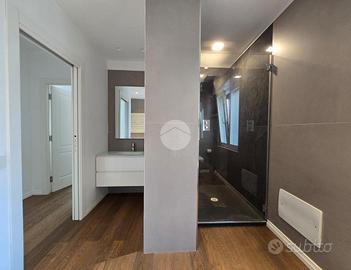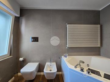 Dal disimpegno vi è l'accesso alle due camere da letto, al bagno padronale con vasca idromassaggio e ad un ulteriore bagno con doccia