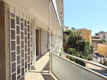 Via del Parco Carelli - Appartamento con vista mare e due posti auto. L'appartamento che vi proponiamo in locazione, è ubicato nel tratto centrale di Via del Parco Carelli, in parco con servizio di portineria diurno e due posti auto di cui uno coperto. L'immobile si trova al secondo piano dello stabile, fornito di ascensore ed è così diviso: ingresso in disimpegno, salone doppio con accesso al balcone con scorcio di vista mare, cucina abitabile fornita di vano lavanderia, tre camere da letto, due bagni e ripostiglio; ogni ambiente gode del proprio punto luce. A completare il tutto vi è la cantinola posta al primo piano dello stabile.