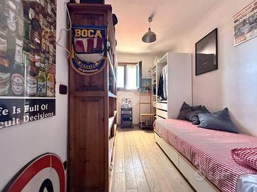 L'immobile è posto ad un sesto piano di uno stabile d'epoca in buone condizioni, si divide in ingresso in soggiorno con accesso al Terrazzo al Livello, Tre camere da letto di cui quella matrimoniale con Terrazzo panoramico sul mare, cucina e doppi accessori.