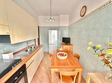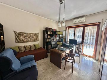 L'immobile, che si trova in un edificio in cemento armato dotato di ascensore, è composto da un ingresso in disimpegno, cucina abitabile, doppi servizi, salone e tre camere.