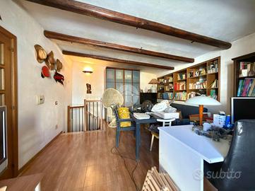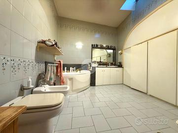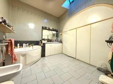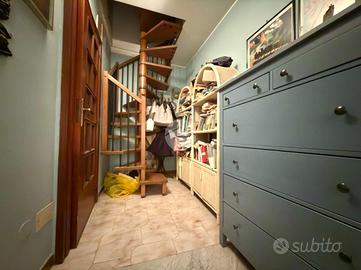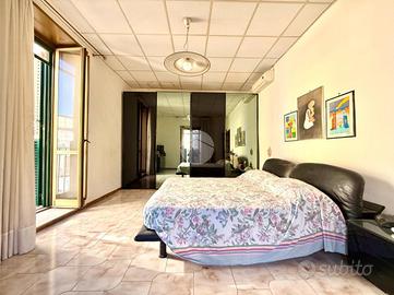 ingresso accogliente che conduce alla zona giorno, soggiorno spazioso e arioso, cucina abitabile con camino, due camere da letto, due bagni con finestra, quattro balconi che garantiscono un'ottima luminosità, infine abbiamo una comoda scala interna che conduce al secondo livello, dove è presente una stanza adibita ad uso studio con accesso diretto sul terrazzo di circa 60mq.