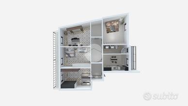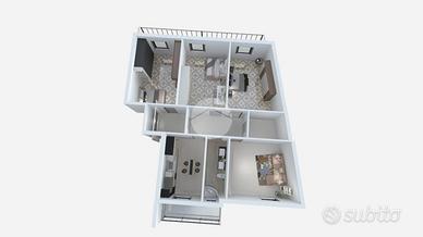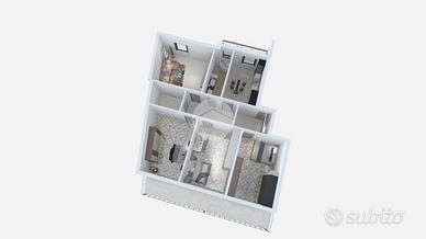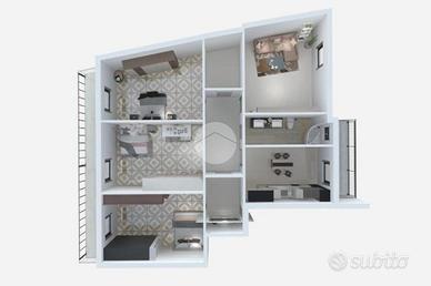 Situato in un parco privato, al piano medio di un edificio dotato di ascensore privato, l'immobile si estende su una superficie di 120 mq. La disposizione interna comprende quattro locali ben distribuiti: tre camere da letto, una cucina ampia, un bagno e un'ulteriore stanza che può essere adibita a soggiorno.
