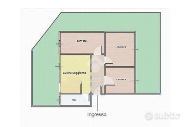L'immobile è da ristrutturare, con ampi margini di personalizzazione ed è così composto: ingresso, corridoio, tre camere, soggiorno-cucina e bagno.