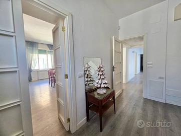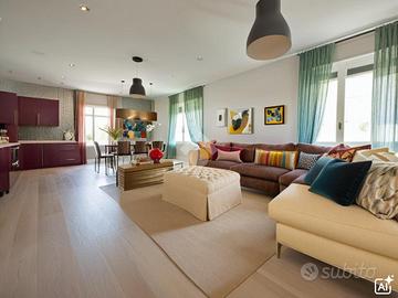 La soluzione si presenta in ottime condizioni interne e ben distribuita ed attualmente così composta: Ingresso in ampio disimpegno, salone triplo con cucina living, 2 ampie camere da letto e doppi servizi di cui uno in camera. La soluzione gode di doppia esposizione con affaccio libero, rendendo l'immobile luminoso l'intera giornata.