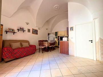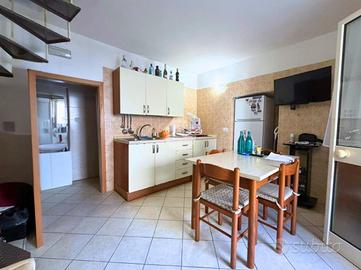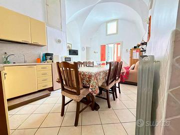 La seconda porzione dell'immobile accoglie con una cucina abitabile, ambiente caldo e conviviale, seguita da un bagno completo. Dalla cucina una suggestiva scala a chiocciola conduce alla camera da letto matrimoniale soppalcata, uno spazio intimo e ricco di fascino. Dalla camera da letto, un'ulteriore scala accompagna all'area solare di proprietà, un vero valore aggiunto nel centro storico, perfetto per momenti di relax all'aperto, cene estive o per godere della tranquillità e della luce.