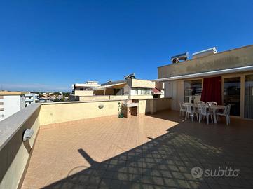 NETTUNO SCACCIAPENSIERI - VIA TRAUNREUT: A pochi passi dal mare, in una posizione tranquilla e ben servita, a soli 800 mt dal centro di Nettuno, proponiamo in vendita un elegante appartamento duplex di 87 mq situato al 4° e 5° piano di una palazzina edificata nel 2007 e dotata di ascensore. L'ingresso apre su un luminoso soggiorno con angolo cottura, arricchito da una comoda uscita su un balcone. Il disimpegno conduce alla zona notte, che ospita due camere da letto, una delle quali con uscita su un balcone angolare. Completa la zona notte un bagno finestrato con doccia. Salendo al piano superiore, tramite una comoda scala interna, si accede a una luminosa zona living caratterizzata da una grande vetrata che offre una vista panoramica e dà accesso ad uno splendido terrazzo di 45 mq. Questo spazio esterno, attrezzato con tende da sole, è perfetto per pranzi all'aperto, cene in compagnia o per angolo relax dove godersi la tranquillità e la vista. Il piano superiore è completato da un piccolo angolo cottura e un secondo bagno finestrato con doccia, offrendo un'ulteriore comodità e la possibilità di rendere questo piano indipendente. Infatti, è possibile accedere a questa zona anche dalla scala condominiale, creando così una separazione che garantisce privacy tra i due piani. L'appartamento è dotato di infissi in PVC a doppio vetro, portone blindato, condizionatori caldo/freddo, tende da sole installate sulle finestre, balconi e terrazzo. Inoltre troviamo i pannelli solari per la produzione di acqua calda e antenna satellitare. Completano la proprietà un posto auto coperto, che offre la comodità di parcheggiare in tutta sicurezza, e una cantina. Possibilità di visionare l'immobile tutti i giorni previo appuntamento telefonico. Tel. - Cell./WhatsApp L'ufficio è aperto tutti i giorni nei seguenti orari: dal LUNEDI al SABATO 9:00- 13:00 e 15:30- 19:30 Tecnocasa Nettuno affiliato Studio Nettuno Est S.r.l. Viale Giacomo Matteotti n. 69 N