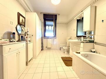La zona notte ospita due camere da letto matrimoniali, entrambe di dimensioni generose, perfette per garantire relax e privacy. I due bagni - uno finestrato e uno cieco - offrono funzionalità e comodità, ideali per la vita quotidiana di una famiglia.