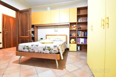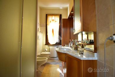 Sul medesimo piano troviamo un bagno di servizio, finestrato e completo di doccia, e uno spazio versatile utilizzabile come studio o cabina armadio, che funge anche da collegamento verso la zona notte.