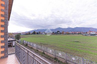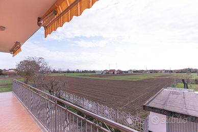 La visuale è aperta sulla campagna circostante e verso la Catena Alpina.