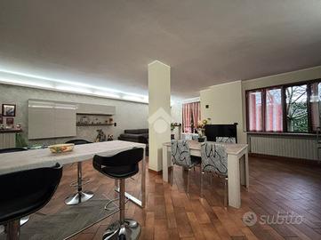 L'appartamento ampio, luminoso e finemente ristrutturato, è situato in un contesto residenziale tranquillo. La soluzione si sviluppa come un quadrilocale con doppi servizi, offrendo spazi funzionali e ben organizzati. L'ingresso conduce direttamente al soggiorno, un ambiente accogliente e spazioso con cucina a vista e un suggestivo caminetto che conferisce calore e intimità. La zona notte è composta da due ampie camere da letto, ideali per garantire il massimo del comfort e della privacy. I due bagni sono ben disposti: uno, più grande, è dotato di doccia, mentre il secondo è stato pensato come lavanderia, ottimizzando ulteriormente gli spazi. A completare l'immobile troviamo un'ampia cantina, perfetta per riporre oggetti, e un magazzino condiviso con gli altri condomini, ideale come area per lo svago. La facciata e gli infissi sono stati rinnovati, conferendo un aspetto moderno e funzionale all'intero edificio. L'appartamento è inoltre dotato di un impianto per stufa a pellet e di un pannello solare, che in aggiunta aiuta la produzione di acqua calda, per l'utilizzo della stufa stessa. Il riscaldamento è autonomo, la caldaia è stata cambiata l'anno scorso già a condensazione. Il consumo dell'acqua è a persona.