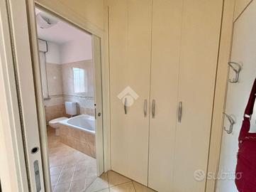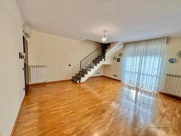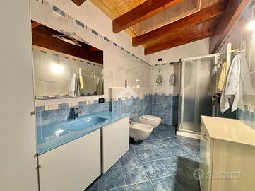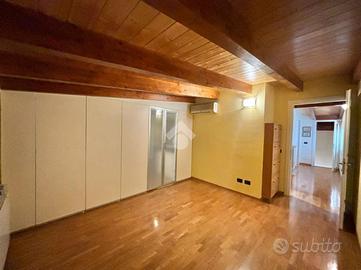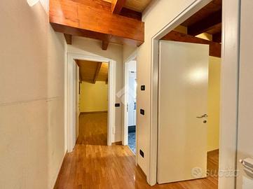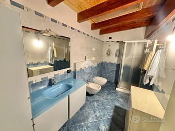 Sant'Andrea: In palazzina del 2007 con poche unità abitative, appartamento con doppi servizi su due livelli. La soluzione ha l'ingresso nella zona living con un grande e luminoso soggiorno e una cucina abitabile con affaccio sul terrazzino coperto. Tramite scala interna si accede alla zona notte, caratterizzata dal soffitto con travi a vista, con una camera da letto matrimoniale con cabina armadio, una cameretta e un terzo ampio locale adattabile a tutte le esigenze. Ogni livello ha il suo bagno, entrambi con finestra, uno con vasca e l'altro con doccia. L'alloggio è dotato di condizionatori, zanzariere e le finiture sono di ottimo capitolato. Il riscaldamento è autonomo e le spese condominiali contenute. Completano la proprietà la cantina, due autorimesse singole al piano semi interrato, oltre ad un posto auto condominaile assegnato nel cortile.
