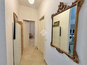Sant'Andrea: In zona comoda ai principali servizi della città, piano alto ristrutturato nel 2019 con ascensore e box. La soluzione è composta da un ampio soggiorno e una cucina abitabile, entrambe con affaccio sul rispettivo balcone. La zona notte ha tre camere da letto, di cui due matrimoniali e una singola. Il bagno ha la finestra e un grande box doccia. Il riscaldamento è centralizzato con termovalvole. Tutti i locali sono forniti di aria condizionata. Completano la proprietà una cantina e un box auto singolo nel cortile.