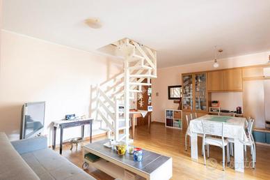 L'immobile, si sviluppa su più livelli e offre un'ottima distribuzione degli ambienti. Al secondo piano, la zona giorno si apre su un luminoso soggiorno con annessa cucina e una loggia verandata ideale per momenti di relax. La zona notte è composta da due camere da letto matrimoniali ed un bagno. La mansarda, con accesso tramite scala intrena in legno bianco, permette di ricavare una terza camera da letto, più un ripostiglio, adattandosi alle esigenze di una famiglia in crescita.