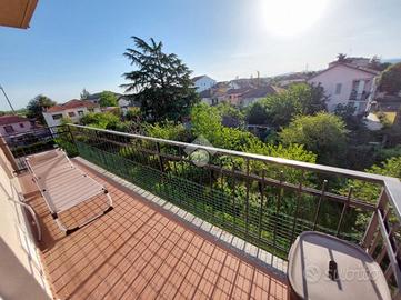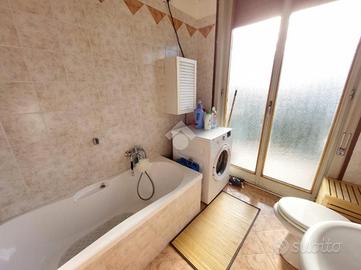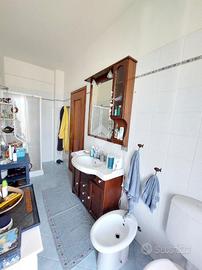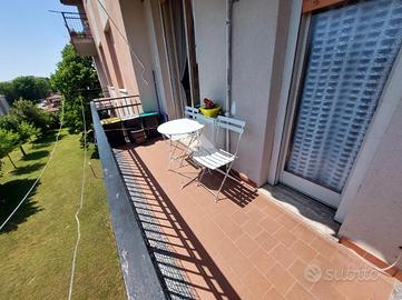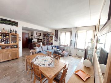 Appartamento fornito di ampia metratura sito in una zona residenziale. L'immobile è sito ad un piano medio servito di ascensore. La zona giorno è composta da una sala ampia che risulta essere molto luminosa ed una cucina abitabile che da sfogo sul terrazzo con vista sul giardino privato condominiale. La zona notte è fornita da due camere da letto, di cui una matrimoniale e due bagni; il primo servito da vasca e il secondo da box doccia, entrambi con porta finestra. Di proprietà un box auto e un posto auto coperto. Compreso anche posto auto scoperto assegnato dal condominio.