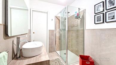 L'ingresso si apre su un'ampia zona giorno, composta da un accogliente living ed una spaziosa cucina abitabile. A seguire un piccolo andito ci collega al bagno finestrato con doccia,recentemente ristrutturato con finiture moderne e alla zona notte che ospita due camere matrimoniali, una di queste dispone di un bagno privato.