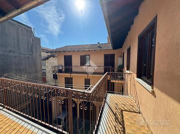 OLEGGIO: Nel cuore del centro storico, ampio quadrilocale sito all'ultimo piano di una piccola palazzina senza condominio. L'immobile si dispone su un unico livello, all'ingresso troviamo subito la zona giorno composta da un luminoso soggiorno con cucina abitabile. Tramite disimpegno si accede alla zona notte, dove sono presenti tre camere da letto, di cui due matrimoniali e una singola; due bagni finestrati e un balcone. Completano la proprietà un box auto e una cantina.