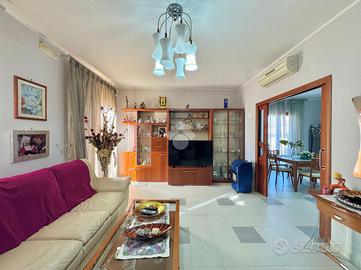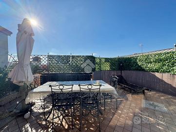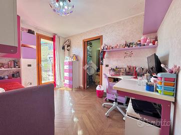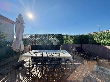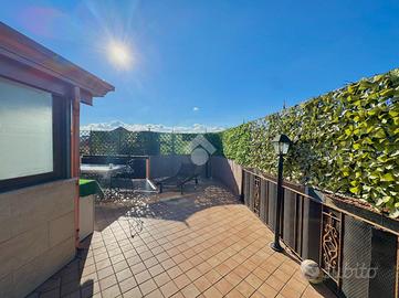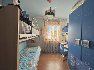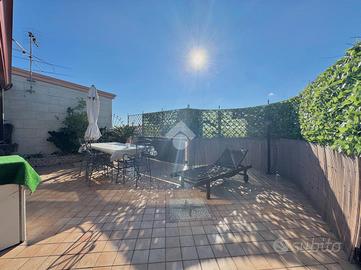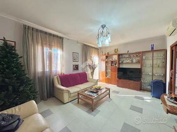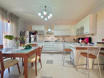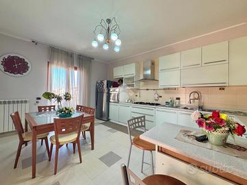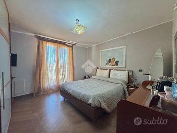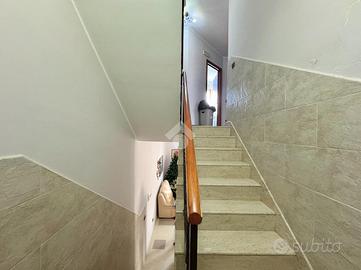 Varcando il portoncino d'ingresso vi è un vano scala in marmo che conduce al primo piano che si compone dall'ampio soggiorno separato dalla cucina abitabile e un primo accessorio; proseguendo per il vano scala vi è la zona notte composta da una camera matrimoniale, una cameretta con cabina armadio, un'altra cameretta e un bagno; proseguendo vi è un ampio terrazzo di copertura attrezzato, una vera e propria area relax. Completa un box auto doppio nel seminterrato.Visionabile tutti i giorni previa telefonata.