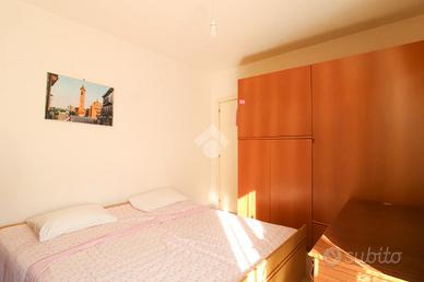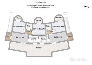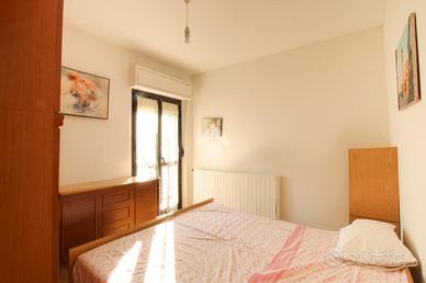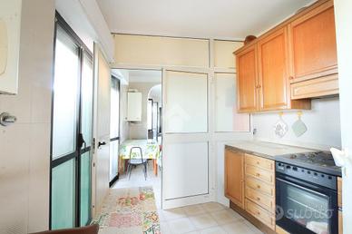 L'appartamento è il risultato dell'unione di un bilocale e un trilocale, ed è dotato di due ingressi autonomi e separati. L'immobile è composto da due soggiorni, due cucine, due bagni, tre camere da letto, un terrazzo e tre balconi. Completano la proprietà due posti auto riservati e due cantine.