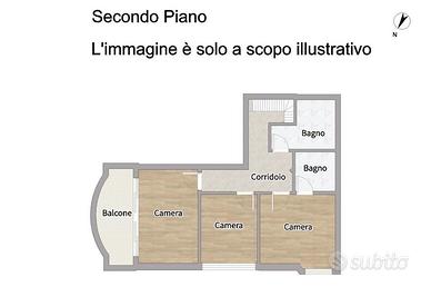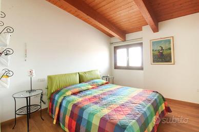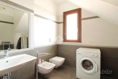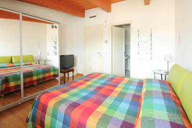 * Zona notte (piano superiore): composta da due camere matrimoniali, di cui una con bagno privato finestrato e box doccia, e l'altra con balcone privato. Completano il piano una cameretta e un bagno finestrato con vasca.