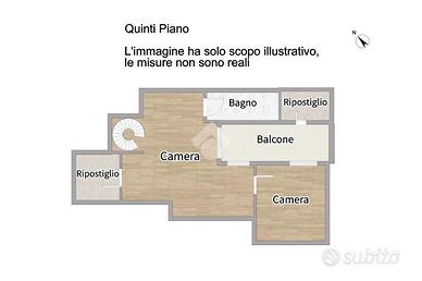 Tramite una scala interna si accede al secondo livello, composto da una camera -- attualmente utilizzata come camera da letto ma facilmente adattabile alle proprie esigenze -- una cameretta con accesso al balcone e un bagno finestrato con box doccia. Un piano versatile che permette di creare una zona indipendente o un ambiente dedicato agli ospiti.
