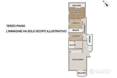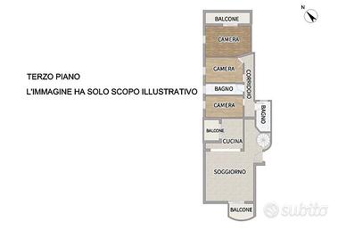 Un comodo disimpegno conduce alla zona notte, composta da tre camere da letto di generose dimensioni, di cui una con balcone privato, e da due servizi: uno finestrato e uno adibito a lavanderia, funzionale e ben organizzato.