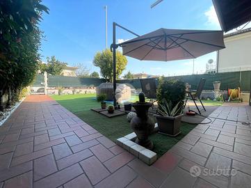 OSPITALETTO: In una tranquilla zona residenziale, proponiamo in vendita un appartamento quadrilocale al piano terra, edificato nel 2004, che unisce funzionalità, ampi spazi interni ed esterni e un'eccellente indipendenza abitativa. L'ingresso conduce ad una zona giorno ampia e luminosa, ambiente accogliente e versatile, affiancata da una cucina abitabile separata, ideale per chi desidera uno spazio dedicato alla preparazione dei pasti, senza rinunciare alla convivialità. La zona notte è ben distribuita e comprende una camera matrimoniale, due camere singole, e due bagni finestrati: il primo dotato di box doccia, il secondo di vasca, offrendo così una doppia soluzione funzionale alle esigenze quotidiane. All'esterno, l'immobile è impreziosito da un giardino privato di circa 70 mq, perfetto per vivere momenti di relax all'aria aperta, organizzare pranzi estivi o dedicarsi al verde. Dal giardino, tramite una scala esterna di proprietà esclusiva, si accede direttamente al box auto doppio e alla cantina, offrendo così un collegamento comodo e riservato agli spazi accessori. L'immobile si presenta in ottime condizioni generali, e inserito in un contesto residenziale silenzioso e ben servito, ideale per famiglie o per chi cerca una soluzione pronta da abitare con tutti i comfort.
