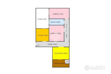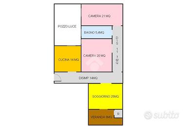 La grandezza degli spazi permette di poter ospitare una famiglia numerosa. Entrando vi è un lungo disimpegno che conduce a tutti i vani: si compone una confortevole cucina, un ampio soggiorno con veranda chiusa e ripostiglio, due spaziose camere da letto e un bagno completo di servizi.