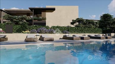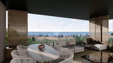 LAGO (Via Metelli) - In fase di ultimazione Dalla demolizione di un fabbricato esistente, si andrà a reinventare e riqualificare uno spazio in prossimità del centro del paese molto richiesto dal punto di vista residenziale. Ci troviamo per l'esattezza in Via Metelli, baricentrica strada di collegamento fra il centro di Padenghe e Soiano del Lago, unendo pertanto le comodità della rete commerciale dei negozietti di vicinato, con il rapido collegamento alle tangenziali Il fulcro del progetto si impernia sul pensiero di rendere tutte le unità con il proprio ingresso indipendente come una villa (Suite in Villa), la disposizione su unico piano, la sicurezza di non essere isolati, i generosi spazi (terrazze, loggiati, giardini e piscina) e gli ampi locali accessori da utilizzare come taverne/palestre/colf ed addirittura autorimesse triple. L'intervento prevede la realizzazione di 10 unità quadrilocali (5 a piano terra e 5 al piano superiore ognuna con il proprio ingresso indipendente, pertanto non esistono vani scala o condivisioni, se non la piscina a sfioro di generose dimensioni. Le 5 unità a piano terra hanno un ingresso attraverso il giardino privato, grande portico e vetrate che aprono sulla zona giorno con soggiorno separato dalla cucina abitabile. La zona notte prevede una master-room con cabina armadio e bagno dedicato, altre 2 camere da letto doppie, ulteriore bagno e lavanderia di supporto. Una scala esclusiva collega un locale jolly interrato da utilizzare a taverna/palestra/colf (con possibilità di realizzare ulteriore bagno/lavanderia) dal quale si accede all'autorimessa pronta ad ospitare 3 vetture.in sintesi, si parcheggia e si entra direttamente in casa in tutta comodità e sicurezza. Le 5 unità a piano primo, di egual misura di quelle a piano terra, godono di un doppio accesso, la prima con scala esclusiva, oppure con ascensore che collega direttamente il grande interrato privato con box triplo e locale jolly che sbarca direttamente in casa, garant