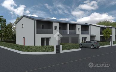 Paese: In palazzina di prossime costruzione su contesto di sei unità abitative proponiamo appartamento tre camere con giardino al piano terra L' appartamento caratterizzato dall' ingresso indipendente è composto da una zona giorno di 40mq, un comodo ripostiglio, due camere singole, una matrimoniale e doppi servizi. Vi è un comodo portico di 15mq che affaccia al giardino disposto sui tre lati. Garage di pertinenza.