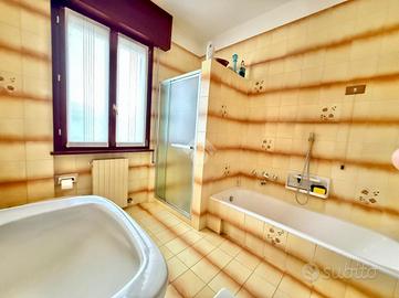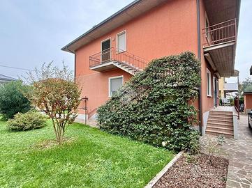 TREVIGLIO Vicinanze: In Pagazzano centro proponiamo in vendita appartamento in villa di 130 mq circondato da un meraviglioso parco piantumato di 800 mq, senza spese condominiali e nella più totale tranquillità e privacy. L'immobile, libero subito, è posto al primo ed ultimo piano con accesso indipendente e si compone da ampio salone di oltre 35 mq dal quale si accede sul balcone esposto a sud, cucina abitabile di 14 mq, disimpegno, tre ampie camere da letto, bagno padronale e box doppio in larghezza di 26 mq. ULTERIORI INFORMAZIONI: Riscaldamento autonomo senza spese condominiali e assenza di amministratore, cancello carrale elettrico, ampio parco piantumato, ingresso indipendente, serramenti in legno con doppi vetri fonoassorbenti, zanzariere, tende da sole e porta blindata. Soluzione davvero unica nel suo genere, da vedere!
