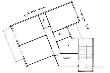 L'immobile si presenta in buono stato ed è composto da un ingresso su disimpegno, cucina abitabile con veranda, due camere da letto, un ripostiglio e un servizio.