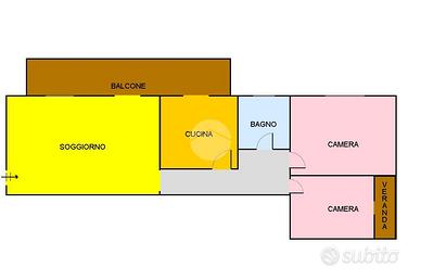 L'immobile è composto da ingresso su ampio salone pari a due vani, cucina abitabile, una camera da letto matrimoniale, una cameretta con balcone verandato e un bagno con vasca.