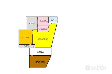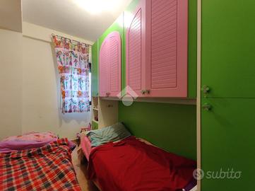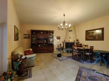 ingresso su cucina abitabile, ampio salone con camino, camera da letto, cameretta e bagno con vasca.