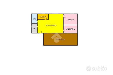 ingresso su salone doppio, il quale collega la cucina, camera da letto, cameretta, bagno con doccia, e ripostiglio.