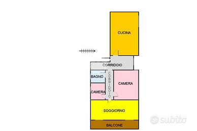Al suo interno è composta da ingresso, cucina abitabile, bagno, camera da letto, cameretta, e soggiorno doppio con balcone che espone sulla via principale.