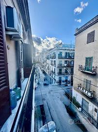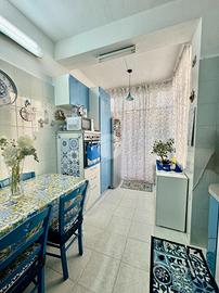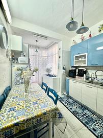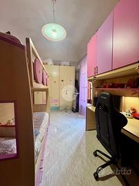 L'abitazione si sviluppa su una superficie ben distribuita, caratterizzata da ambienti ampi e luminosi grazie alla doppia esposizione. L'ingresso apre su una pianta razionale che conduce a due camere che condividono un ampio balcone, un salone con ulteriore balcone, una cucina semi abitabile, bagno, ripostiglio e, a completare la proprietà, un ampio terrazzo esclusivo: uno spazio raro e prezioso, perfetto per momenti di relax, convivialità o da vivere come un'estensione della casa nei mesi più miti.