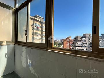 L'appartamento si estende su una superficie di 140 mq. ca. Tramite porta blindata si accede direttamente sull'ingresso che disimpegna, a sinistra la cucina abitabile di 16 mq. con accesso al funzionale balcone verandato che espone all'interno dell'area condominiale, adiacente vi è il soggiorno doppio di 31 mq. con accesso al balcone che espone direttamente su Via Sirio garantendo, inoltre, una vista panoramica sulla città.