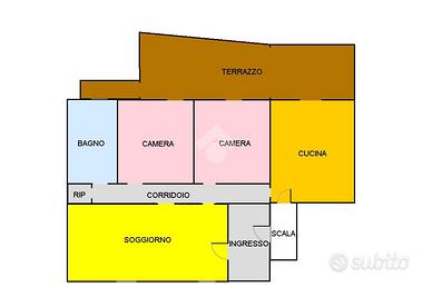 Proponiamo appartamento al piano rialzato con ingresso indipendente composto da una grande zona giorno con cucina e salone, un corridoio di disimpegno due camere da letto e un ripostiglio.