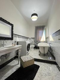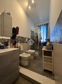 La zona notte presenta, invece, due camere da letto di cui una matrimoniale ed una cameretta con balcone. I bagni sono due di cui uno con box doccia e uno con vasca. E' presente inoltre, anche un ripostiglio.