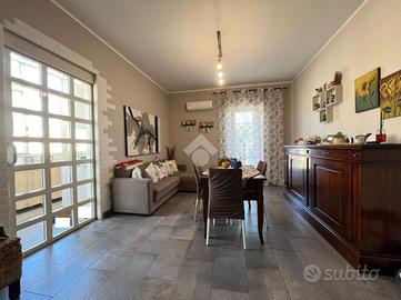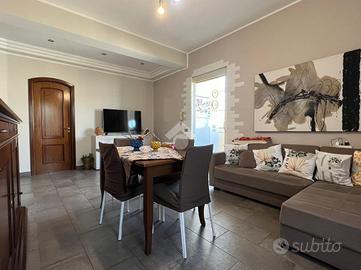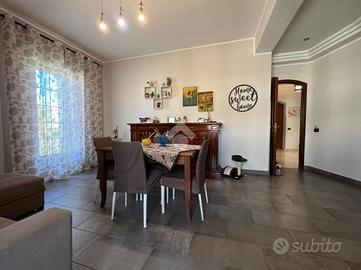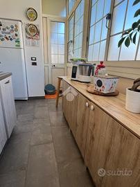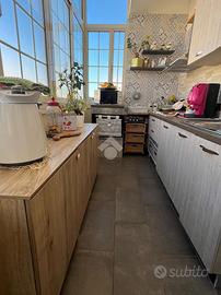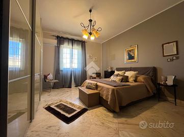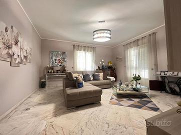 L'ingresso è direttamente su un disimpegno dal quale si accede direttamente all'ampia zona giorno, caratterizzata da una comoda cucina soggiorno ed un luminoso salone annesso. Sono presenti tre balconi, di cui uno verandato ed due annessi al salone.