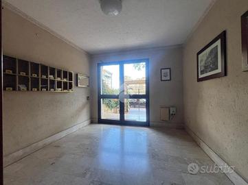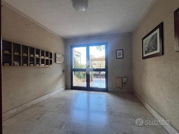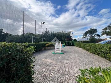 A completare la zona giorno vi è un soggiorno con annessa cucina verandata. La vista dalla veranda si apre sull'interno, con visuale sui posti auto e sul parco giochi condominiale.