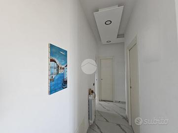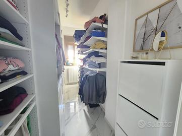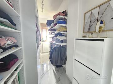 Un disimpegno conduce alla zona notte, composta da una camera matrimoniale con una spaziosa cabina armadio dedicata, una funzionale cameretta, e due servizi igienici (WC) moderni e ben rifiniti.