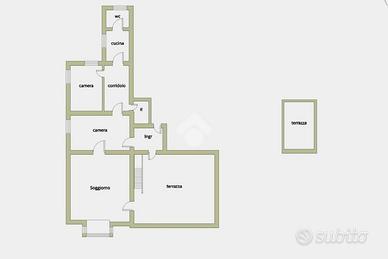 Internamente, gli ambienti sono tutti finestrati e luminosi. Troviamo due camere da letto, un ampio soggiorno con doppia esposizione, cucina, bagno e ripostiglio.