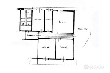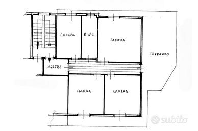 L'APPARTAMENTO - è composto da ingresso su disimpegno, cameretta, camera da letto, cucina soggiorno , bagno finestrato con doccia, ripostiglio e un ampio terrazzo che gira attorno a tutto l'immobile.