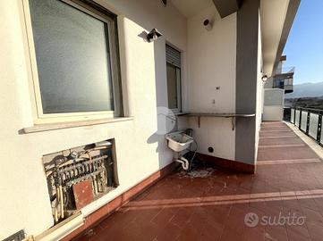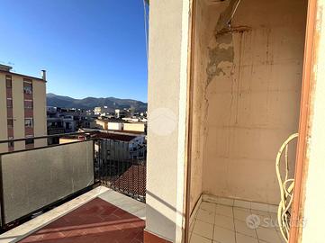 Situato al quinto piano di uno stabile servito da ascensore, questo quadrilocale di 110 mq colpisce fin da subito per la sua luminosità e per la vista aperta sul prospetto principale. L'ingresso accompagna direttamente nel soggiorno un ambiente accogliente e arioso , illuminato dalla grande porta finestra che conduce al balcone principale. Uno spazio vivibile, arricchito dalla presenza di un comodo ripostiglio esterno e di una piletta con punto acqua, perfetto per le esigenze quotidiane. Annesso al soggiorno vi è un comodo ripostiglio. Dal soggiorno, attraverso un elegante arco in muratura, si accede alla cucina abitabile, ben proporzionata e funzionale, dotata di un pratico armadio a muro e di un secondo ingresso che ne facilita l'utilizzo e la distribuzione degli spazi. Un disimpegno collega in modo ordinato la zona giorno alla zona notte. Qui si trovano tre camere, pensate per garantire comfort e privacy. Due di esse affacciano sul balcone retrostante, offrendo tranquillità e riservatezza, e sono impreziosite dalla presenza di soppalchi ad uso ripostiglio, ideali per ottimizzare gli spazi. Completa la zona notte un ampio bagno finestrato con vasca. A servizio dell'abitazione è presente anche un secondo bagno con doccia, cieco, che rende l'immobile particolarmente funzionale per famiglie numerose o per chi desidera maggiore comodità.