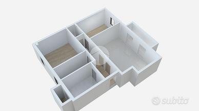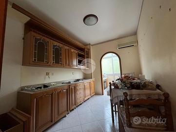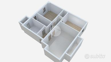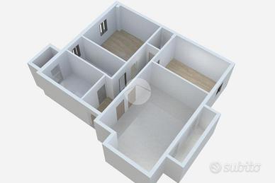 L'immobile, luminoso e ben distribuito, si apre su un comodo ingresso con disimpegno che conduce, sulla sinistra alla cucina, resa funzionale dalla presenza di una veranda annessa utile come spazio multifunzionale o lavanderia. Proseguendo lungo il corridoio si accede ad un ampio salone doppio, ideale per area living e zona pranzo. La zona notte comprende due camere da letto di generose dimensioni e un servizio. Completa la proprietà un pratico ripostiglio, utile per ottimizzare al meglio gli spazi.
